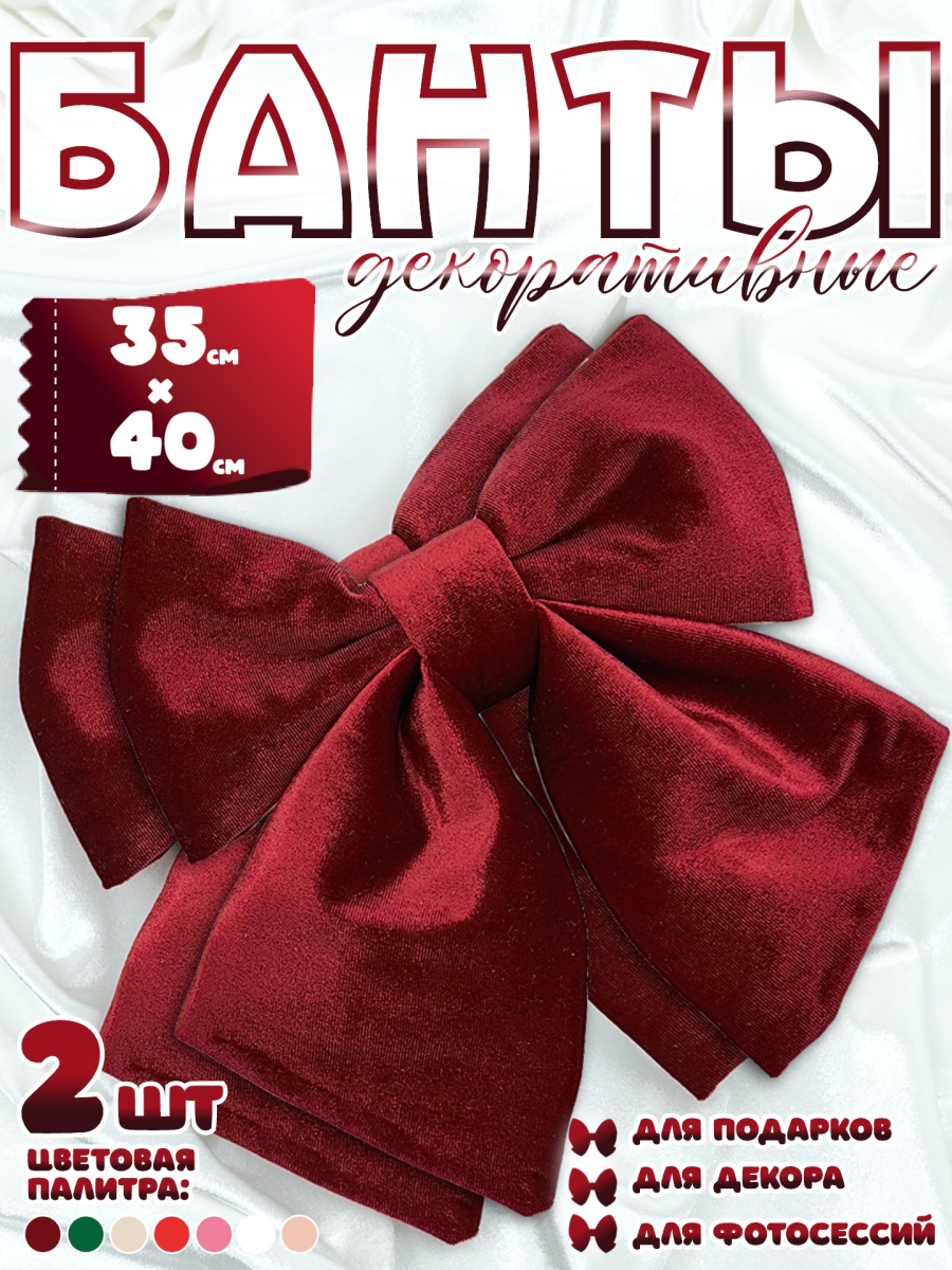 Бант 35х40 бордовый 2шт С-81VINOUSx2