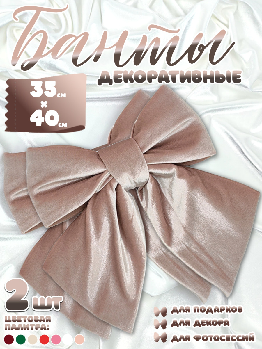 Набор декоративных бантов "Елочные сказки"- 2 шт, станет прекрасным дополнением к вашему декору, на праздник, торжество или просто для души. Эти изящные банты из мягкого велюра, с подложкой из вспененного полиэтилена, придадут праздничное настроение любому интерьеру. Их нежный пудровый цвет и дизайн в виде банта, идеально впишутся в общую тематику праздника. Банты можно использовать как украшение для елки, для создания акцентных элементов одежды, а также для декора дома, мебели, создавая атмосферу уюта и волшебства. Также, подойдут для украшения подарочных коробок. Для использования в интерьере, для одежды, требуется дополнительное крепление (в комплект не входит).