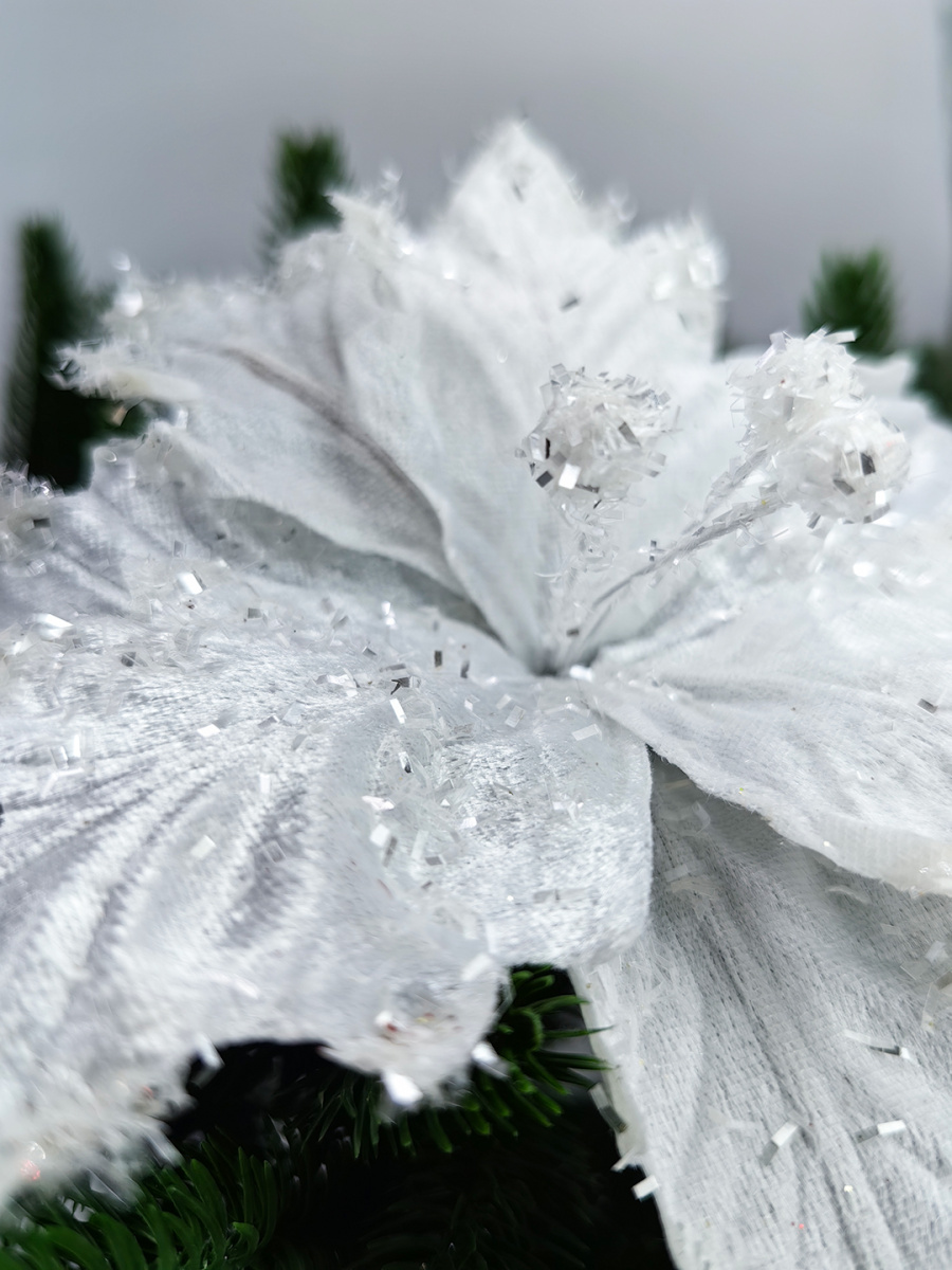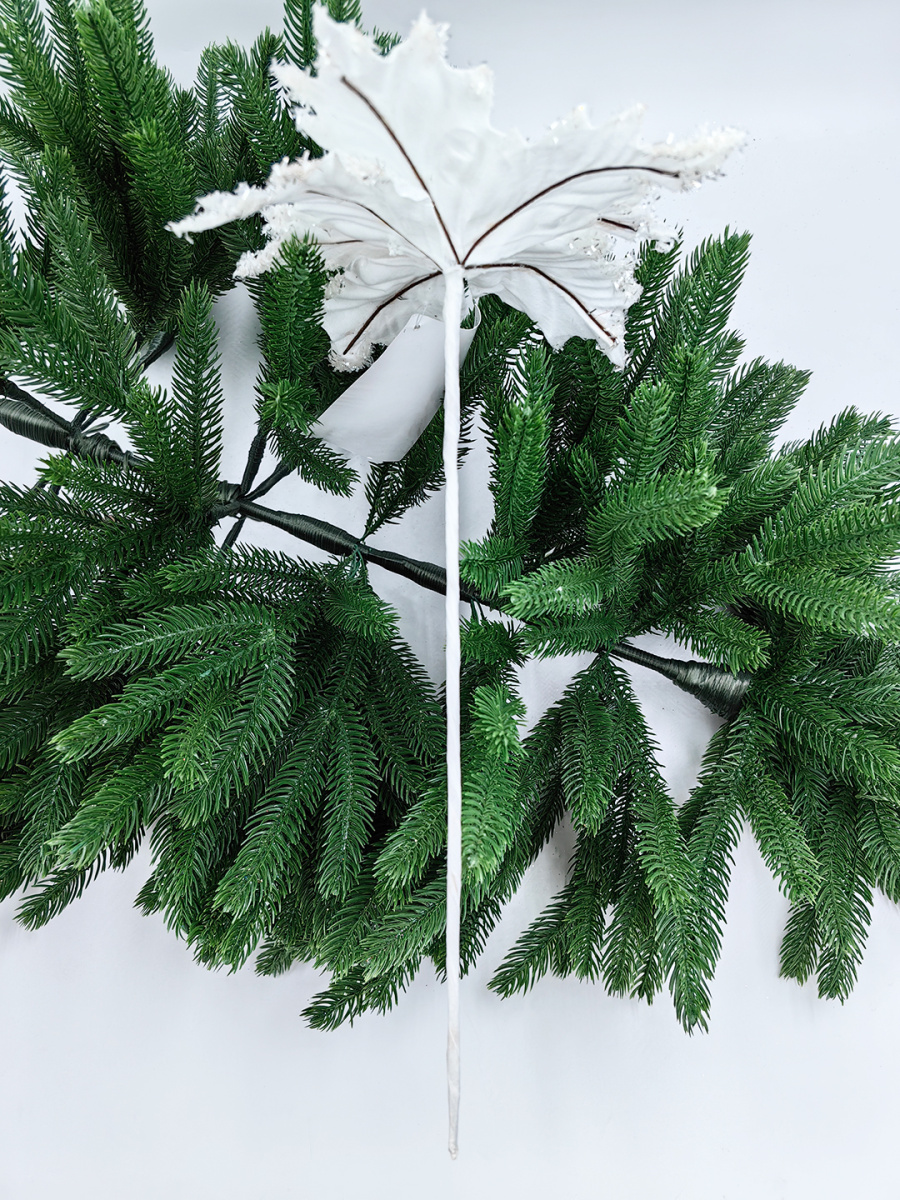 Новогодний декор в виде бантика, ленты, бус, цветов и веток украсит интерьер дома или офиса в преддверии Нового года. Оригинальный дизайн и красочное исполнение создадут праздничное настроение. Новогодние украшения всегда несут в себе волшебство и красоту праздника. Создайте в своем доме атмосферу тепла, веселья и радости, украшая его всей семьей.Диаметр листьев в развернутом виде до 19 см.