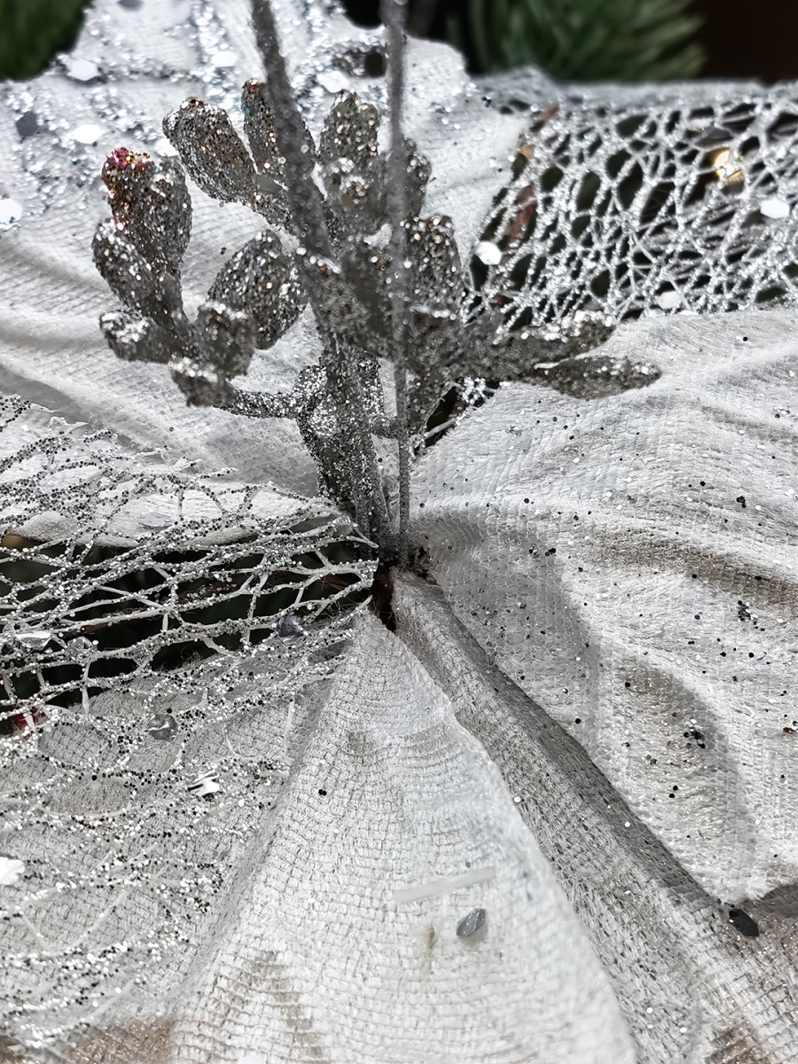 Цветок белый/серебристый d 24 см Р-7553