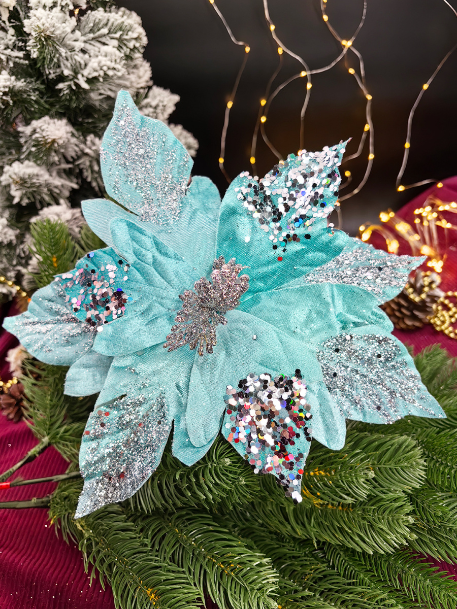 Цветок искусственный декоративный новогодний, d 28 см, цвет мятный, арт. MG24597