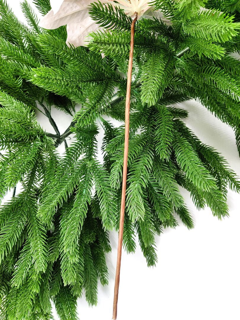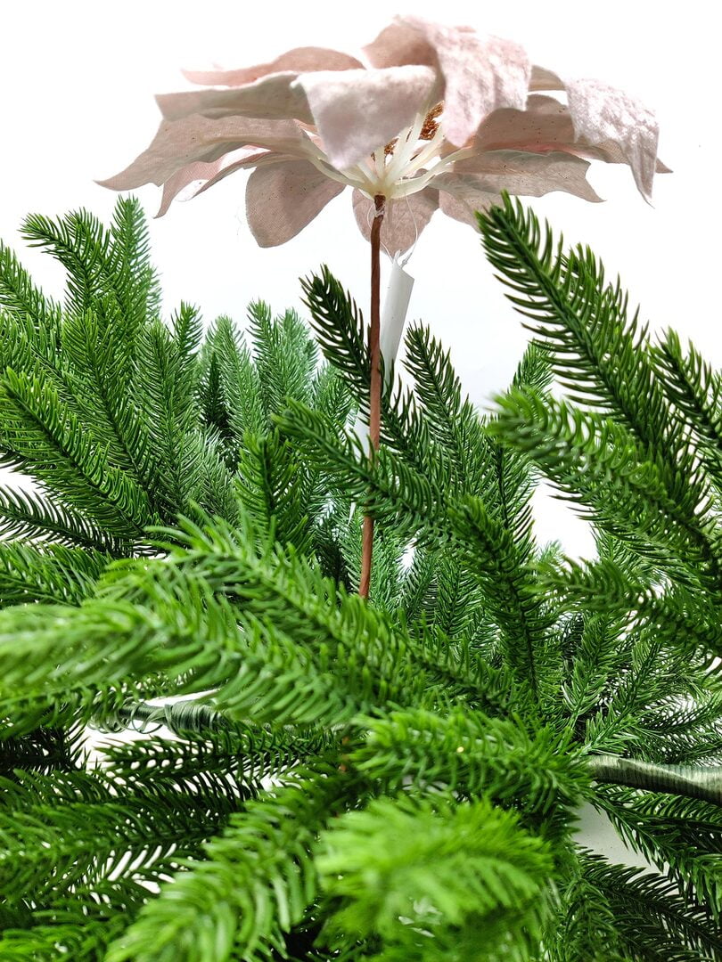 Новогодний декор в виде бантика, ленты, бус, цветов и веток украсит интерьер дома или офиса в преддверии Нового года. Оригинальный дизайн и красочное исполнение создадут праздничное настроение. Новогодние украшения всегда несут в себе волшебство и красоту праздника. Создайте в своем доме атмосферу тепла, веселья и радости, украшая его всей семьей.Диаметр листьев в развернутом виде до 22 см.