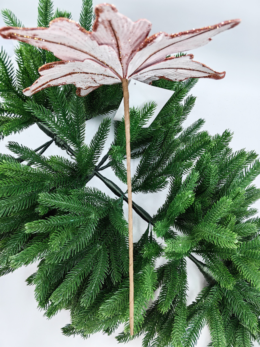 Новогодний декор в виде бантика, ленты, бус, цветов и веток украсит интерьер дома или офиса в преддверии Нового года. Оригинальный дизайн и красочное исполнение создадут праздничное настроение. Новогодние украшения всегда несут в себе волшебство и красоту праздника. Создайте в своем доме атмосферу тепла, веселья и радости, украшая его всей семьей.Диаметр листьев в развернутом виде до 26 см.