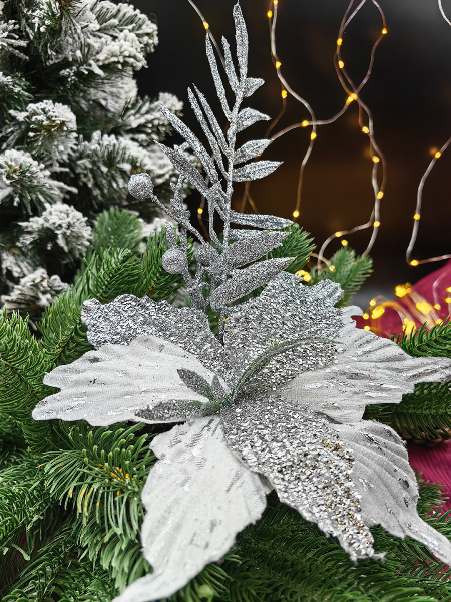 Размеры: сам цветок диаметром 20 см, длина ножки 15 см, длина листа папоротника 20 см.