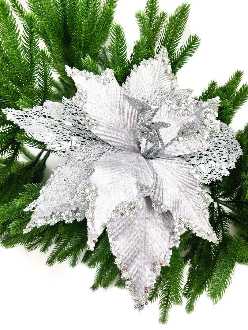 Цветок серебро d 35 см Flo-12-5S