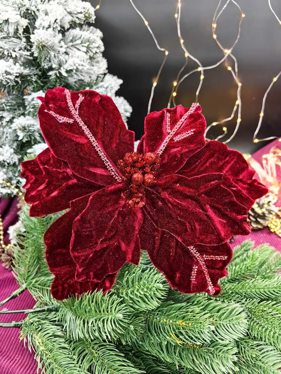 Цветок искусственный декоративный новогодний, d 30 см, цвет винный, арт. MG24614