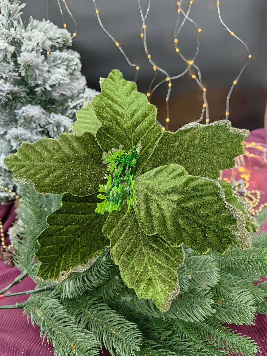 Цветок искусственный декоративный новогодний, d 28 см, цвет зеленый, арт. MG24608