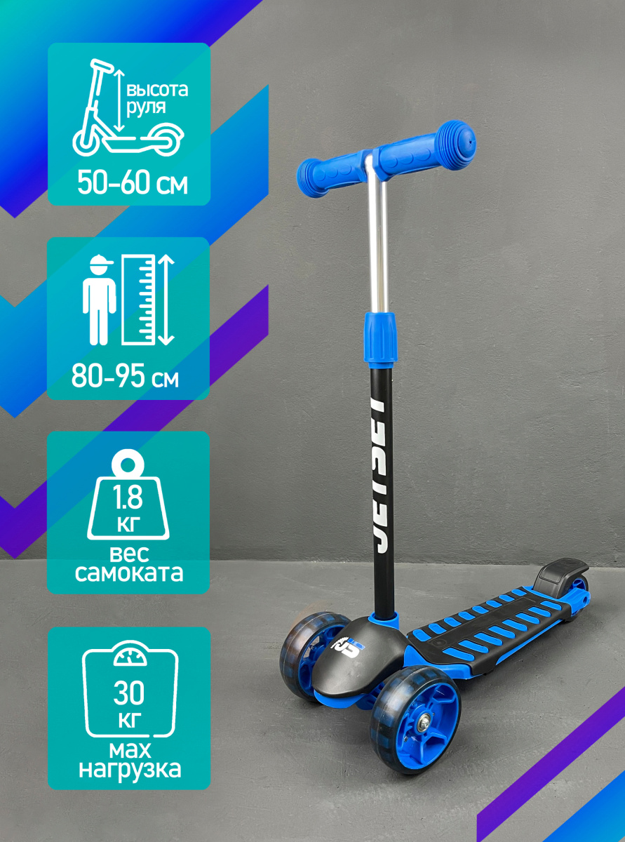Самокат трехколесный JetSet S00613 черно-синий S00613B-ББ