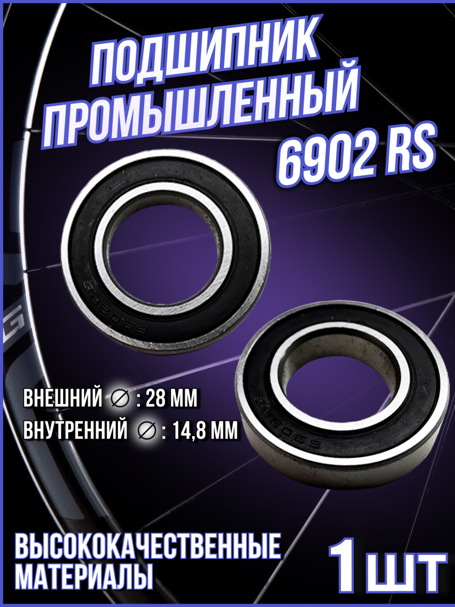 Подшипник 6902 RS 28х14,8х7 шариковый радиальный однорядный. Закрыт с двух сторон металлопластиковыми уплотнениями из пластичного материала, который защищает полость подшипника от попадания пыли и утечки смазки. Надежность против утечки смазки больше чем у подшипников с металлическими защитными шайбами.