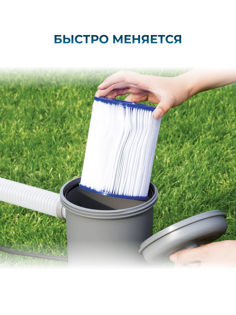 Сменный фильтр-кардридж для фильтрующего насоса (предназначен для очистки воды в надувных и каркасных бассейнах Bestway, а так же в надувных джакузи), без труда и быстро меняется. Простая конструкция, легко чистится.