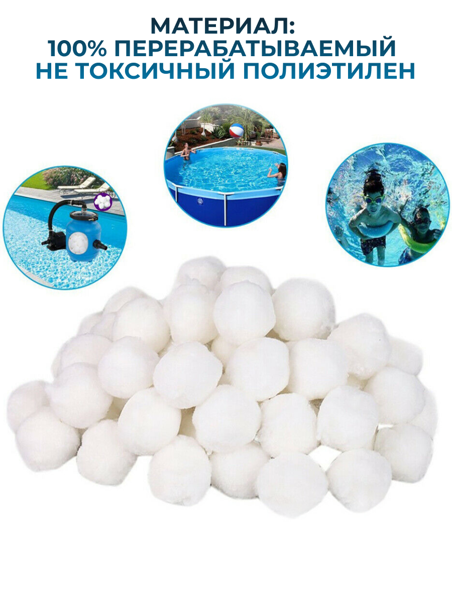 Наполнитель для песчаного фильтра Fiber Ball используется для очистки воды в фильтрах-насосах для бассейна. Это отличная альтернатива кварцевому песку: высокая эффективность фильтрации, эргономичность и возможность многократного использования после стирки шариков.