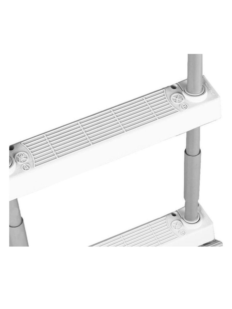 Лестница для каркасных и надувных бассейнов с высотой борта 122 см. Легко и быстро устанавливается, имеет широкий угол между сторонами, достаточный для того, чтобы не касаться стенок бассейна и в то же время быть удобной в использовании. Стойки лестницы металлические с влагозащищенным покрытием, имеют специальные наконечники-колпачки, защищающие дно бассейна от повреждения. Ступеньки сделаны из усиленного ABS пластика, имеют противоскользящую насечку. ВНИМАНИЕ! Прыгать с лестницы в бассейн запрещено!