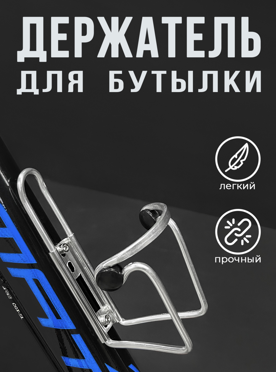 Алюминиевый флягодержатель, пластиковые упоры для бережного использования фляги. Обеспечивает надежное крепление фляги