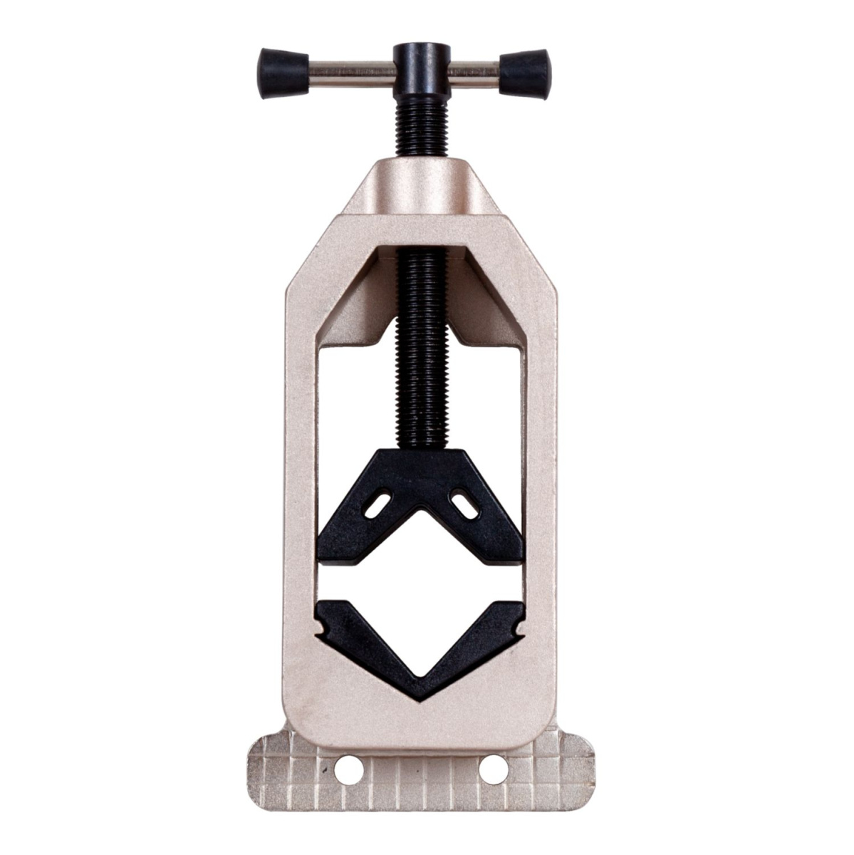 Направляющая крепится в тиски, труба устанавливается с помощью зажима, после чего можно приступать к работе.