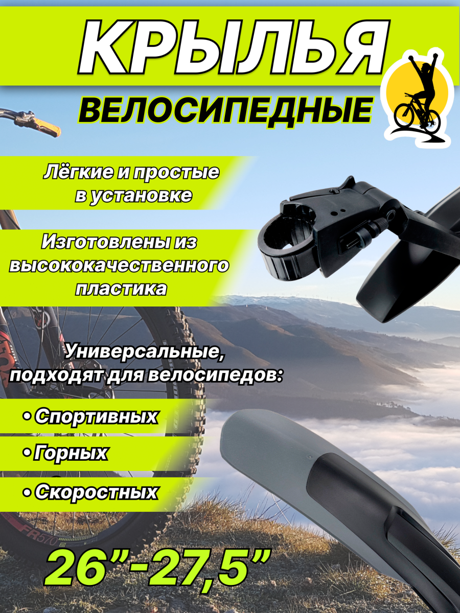 Велосипедные крылья выполнены в современном дизайне из качественных материалов. Универсальные и надежные крылья являются отличным выбором для защиты от воды и грязи в условиях непогоды. Для установки на горные велосипеды.