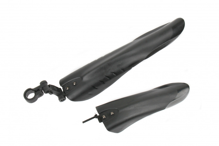 Универсальные крылья для велосипедов с колёсами от 20 до 26 дюймов. Закрепляются на велосипеде посредством винтов, спереди – к горилле, сзади – к подседельному штырю. Заднее крыло регулируется по высоте и наклону.