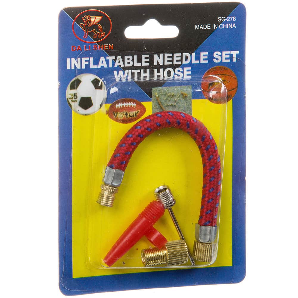 Набор насадок, который позволит вам накачать любой надувной элемент одним насосом. В комплект входит:. Насадка для резиновых мячей, Насадка для накачивания надувных изделий: матрасы, бассейны и пр., Переходник для велонипеля, Тканевый шланг с резьбой для насоса.Комплект реализуется на пластиковом блистере.