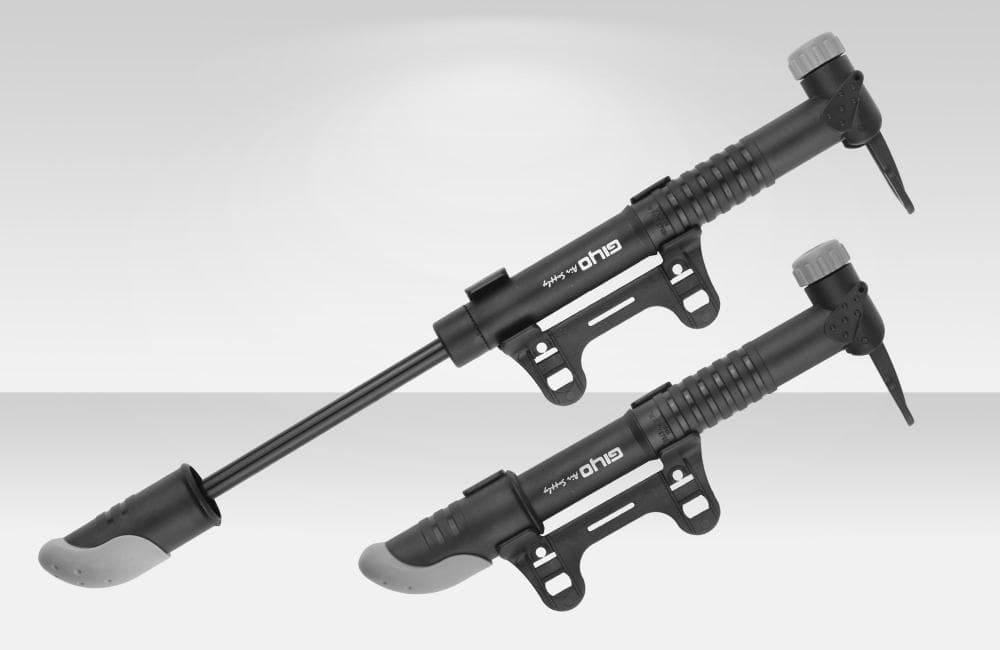 Насос GP-04K Giyo ручной, длина 9 дюймов, пластиковый корпус, переходник автовентиль/Presta, с креплением к раме велосипеда, серо-чёрный