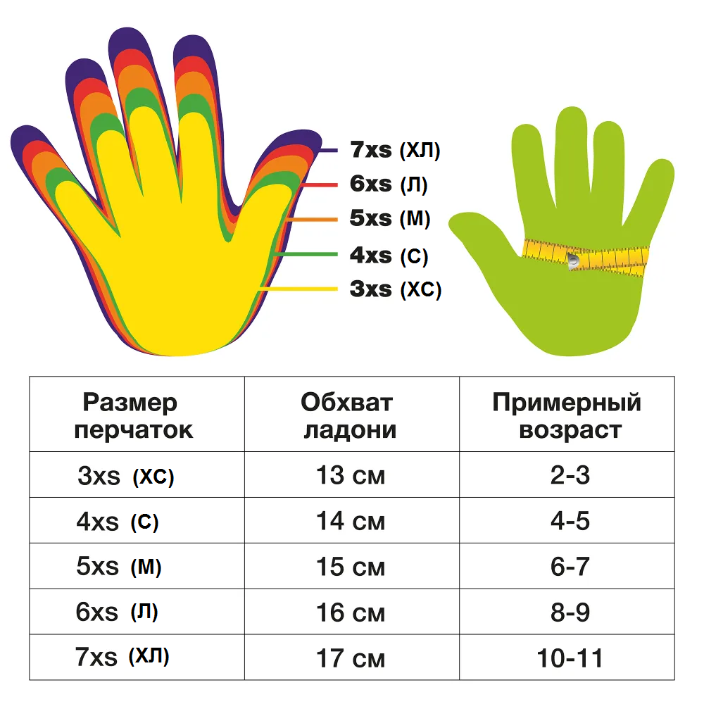 Окружность ладони, см 13