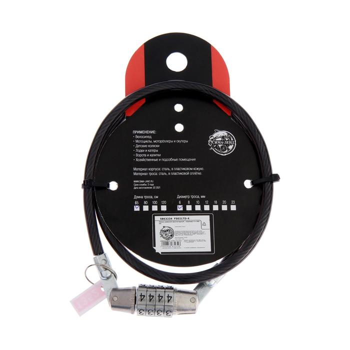 Замок предназначен для защиты от угона велосипедов, самокатов, колясок, мотоциклов, скутеров. Оплетка из ПВХ защищает трос от влаги.