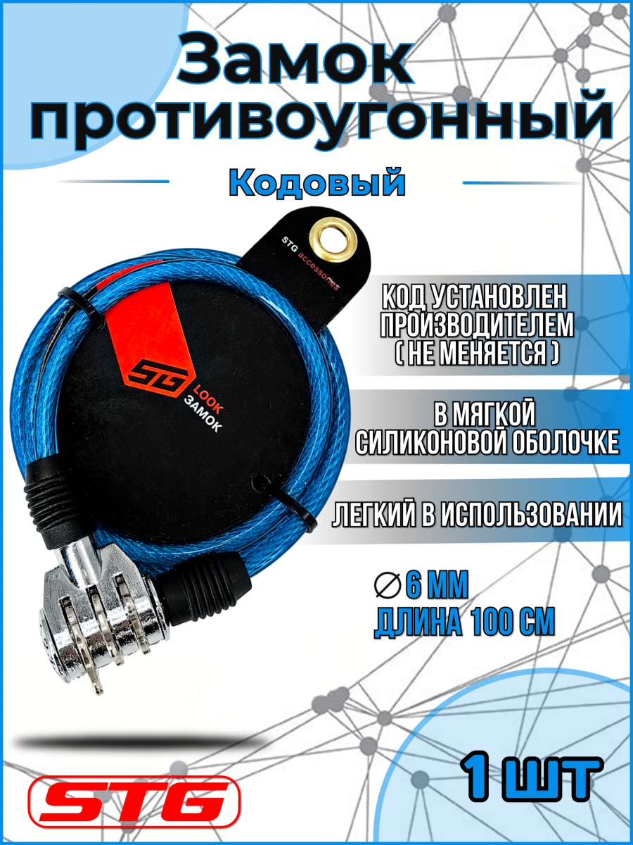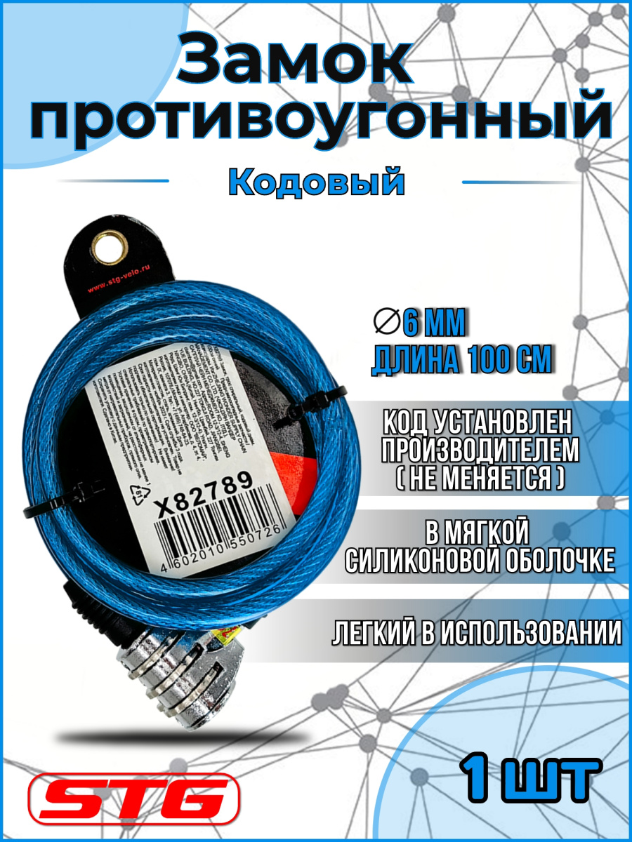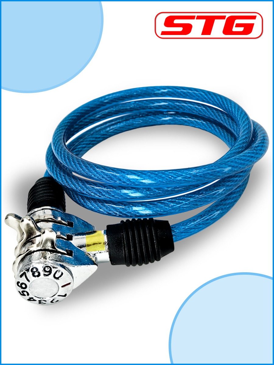 Трос-замок STG спиральный 6х100см кодовый синий Х82789. Кодовый велозамок "STG" со спиральным тросом поможет обезопасить велосипед от угона. Выполнен из стали, пластика и резины. Будучи легким, гибким и надежным, он станет замечательным решением для обеспечения безопасности велосипеда. Диаметр троса: 6 мм. Длина: 100 см. Велосипедный кодовый замок отлично подойдет для тех, кто хочет быть уверен в сохранности своего транспортного средства. Предназначен для защиты от хищения электросамокатов, велосипедов, детских колясок, другой малогабаритной техники. Защита кодового замка в виде вращающегося барабана. Не нужно носить с собой ключ, чтобы открыть велозамок - нужно только помнить код из 3 цифр (которые указаны на замке, код устанавливается производителем и не меняется). Замок для велосипеда выполнен из стали, покрытой пластиком. Велосипедный замок представляет собой стальной трос в оплетке. Замок порадует прочностью и гибкостью. Предназначен для защиты от краж велосипедов, детских колясок, мопедов, самокатов. Замок с кодом обеспечивает высокий уровень защиты.