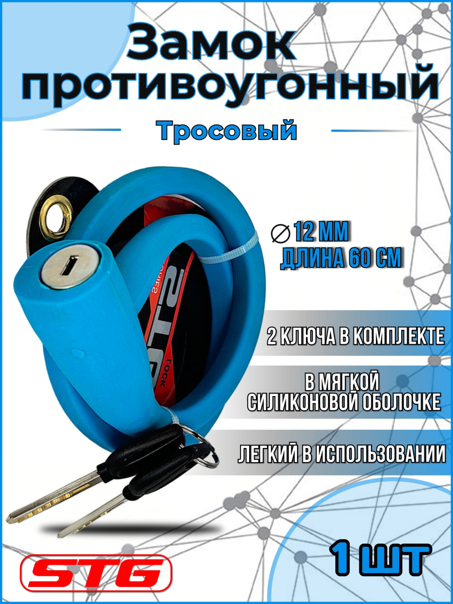 Велосипедный замок - это отличная вещь для сохранности вашего велосипеда. Блокируется при помощи ключа (2 шт, входят в комплект).Длина 60см. Диаметр 12мм. Вес 270г.