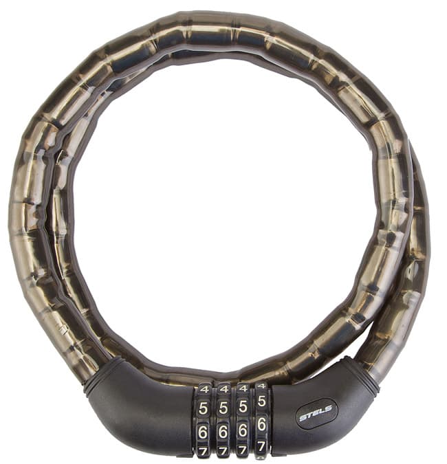 Трос-замок 81601 с шифром 4 цифры, со стальными звеньями, 18x1000 мм, чёрный