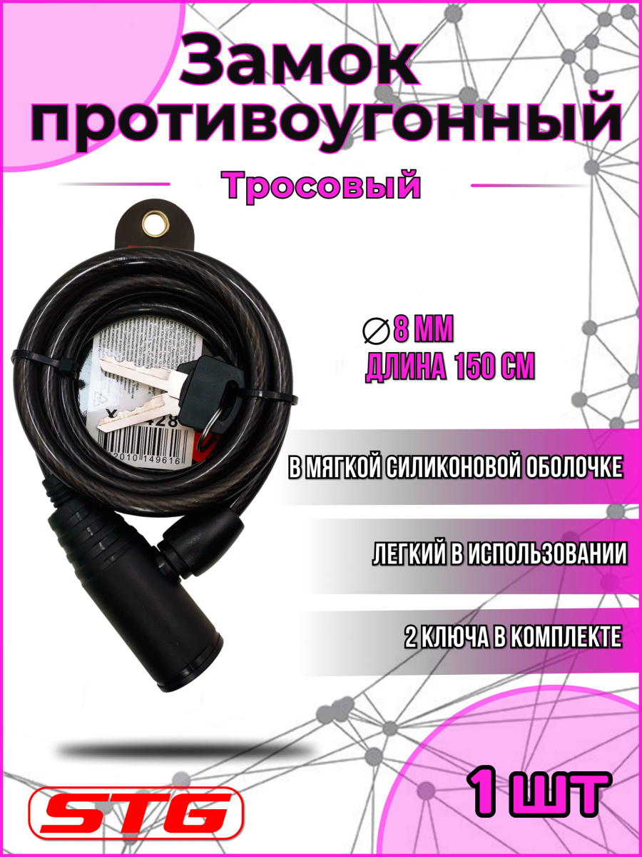 Велозамок тросовый STG Х10428 - надежное и удобное средство защиты вашего велосипеда от угона. Тросовый тип замка обеспечивает высокую степень защиты благодаря своей конструкции. Трос диаметром 8 мм и длиной 150 см надежно удерживает велосипед на месте, предотвращая его перемещение. Запирание замка осуществляется с помощью ключа, что обеспечивает дополнительную безопасность и удобство использования. В комплекте с замком идут два ключа, что позволяет вам всегда иметь запасной ключ на случай утери основного. Конструкция замка включает встроенный замок, что делает его компактным и незаметным на велосипеде. Вес замка составляет всего 266 грамм, что делает его легким и удобным для переноски и хранения. Выбирая велозамок тросовый STG Х10428, вы получаете надежное и удобное средство защиты вашего велосипеда от угона.