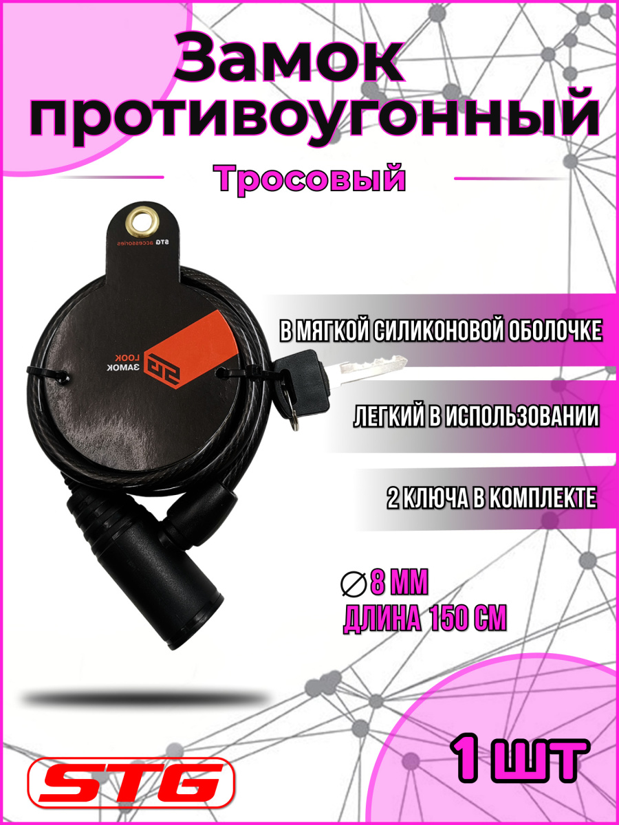 Замок-трос STG , 8x1500мм, черный, Х10428