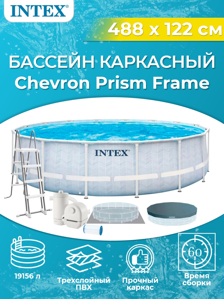 Бассейн каркасный Chevron Prism Frame 488х122 см, арт. 26746