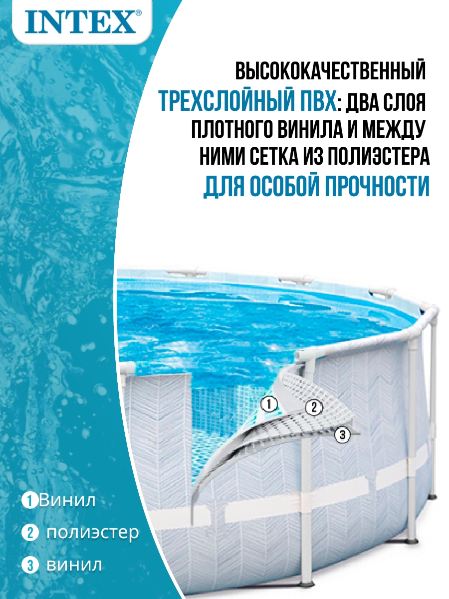 Каркасный бассейн INTEX® Chevron Prism Frame Premium 26746 – новинка 2024 года. Принт Shevron разработан для того, чтобы придать вашему бассейну свежий, современный вид. Приобретая бассейн Интекс, Вы и Ваша семья будете наслаждаться купанием в нем не один год.