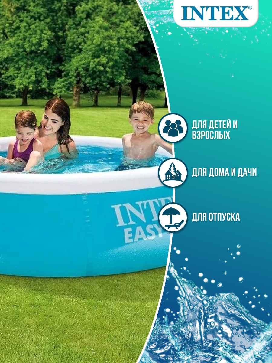 Надувной бассейн Intex Easy Set Pool 183x51(Диаметр чаши 183 см Диаметр кольца 145 см) 54402 / 28101 - это идеальный первый бассейн для вашего ребенка! Высота бассейна всего 51 см в высоту, так что даже самые маленькие дети будут купаться там с удовольствием. Благодаря своим компактным размерам бассейн поместиться даже в небольшом саду.