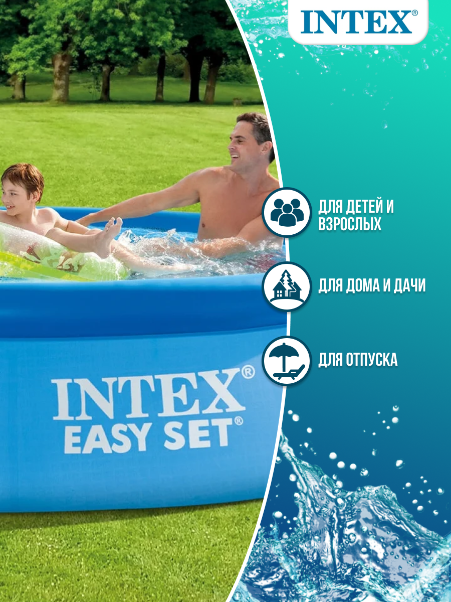 Надувной бассейн Intex 305*76 см - модель синего цвета с непрозрачными стенками. Оригинальность конструкции позволяет очень легко его устанавливать. Вы просто расправляете чашу аккуратно на земле, наполняете воздухом верхнее кольцо и начинаете заливать в круглый надувной бассейн воду. Кольцо всплывает над водой и поднимает стенки. Просто и гениально! Бассейны Интекс - это лучшее решение для дачи или загородного участка, а серия Intex Easy Set - самая простая в эксплуатации линейка этого бренда, поэтому она уже давно завоевала любовь покупателей.