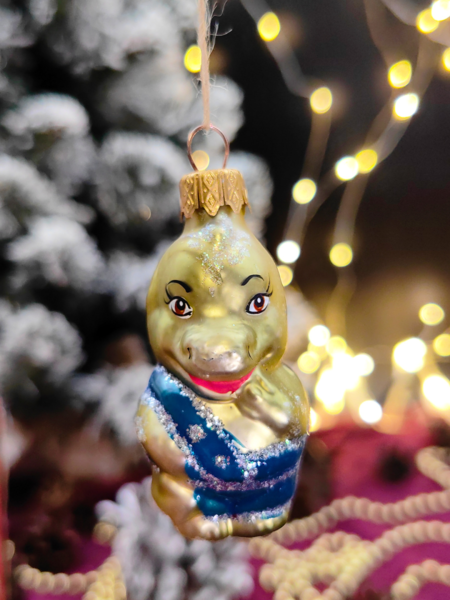 Елочная игрушка Дракон оливковый 6 см, стекло // дракон