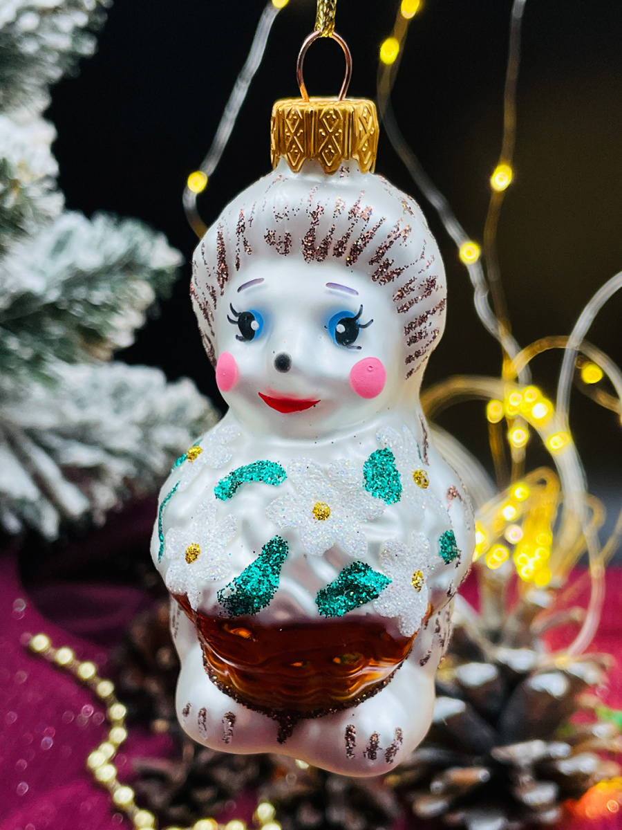 Елочная игрушка Ежик серебристый 9 см, стекло  // ёжик SILVER