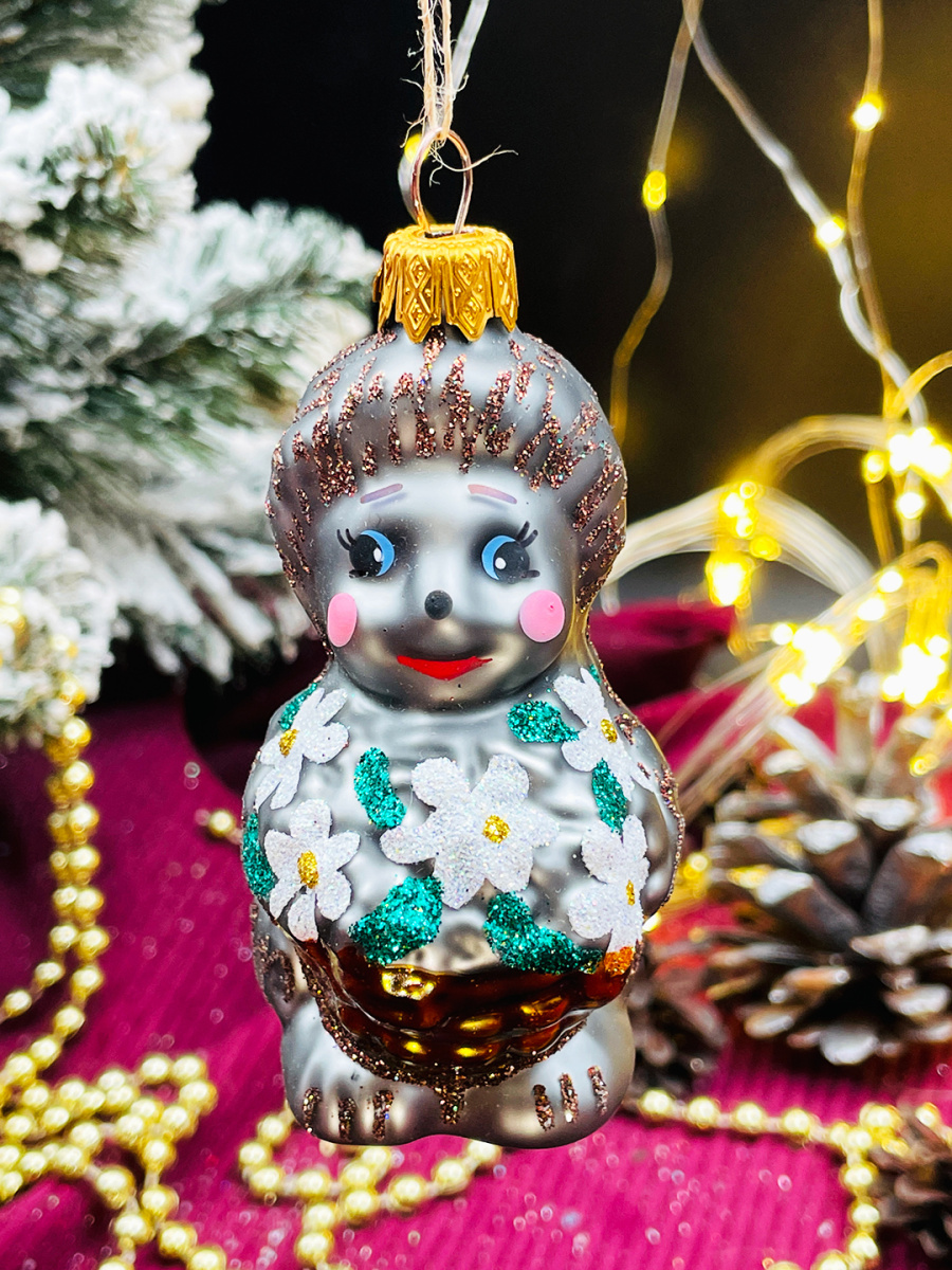 Елочная игрушка Ежик серый 9 см, стекло  // ёжик GRAY