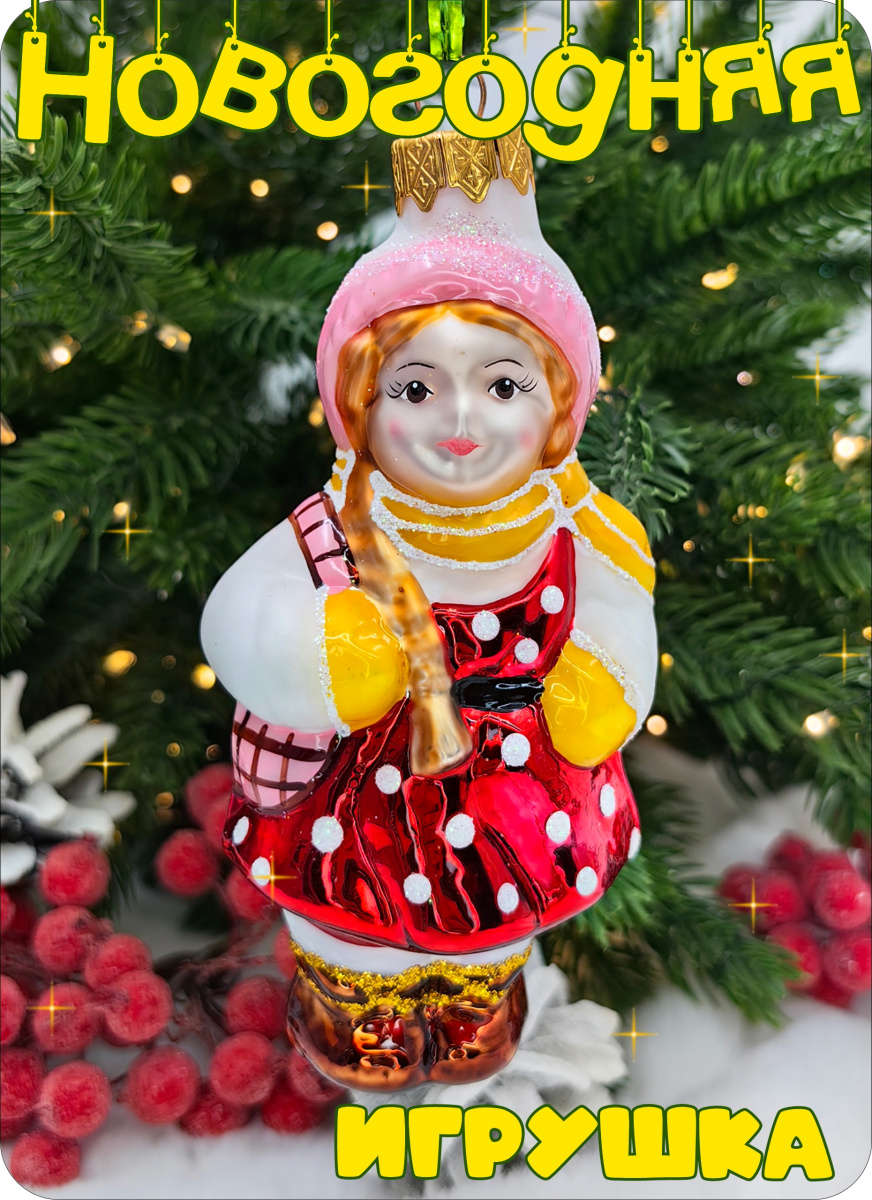 Елочная игрушка Герда красный 11 см, стекло // Герда 183