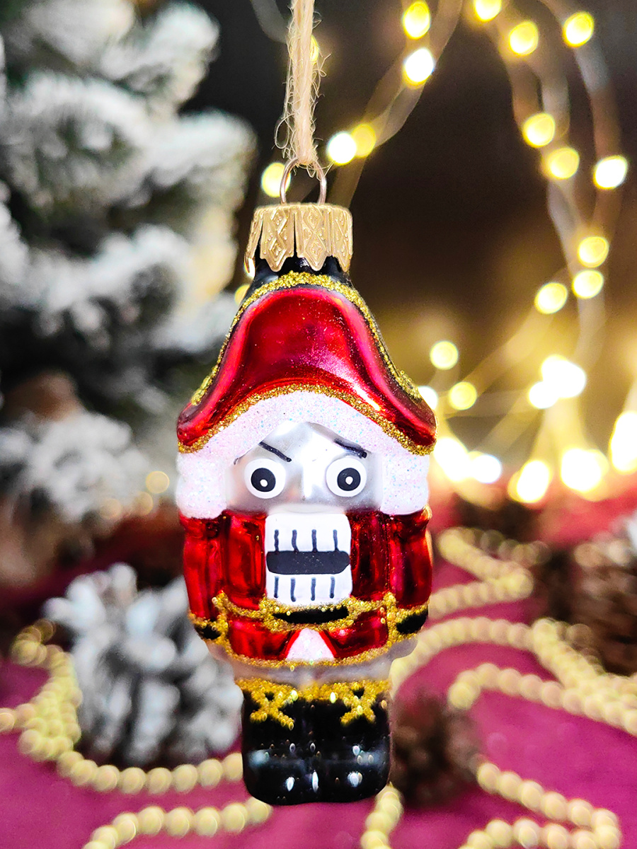 Елочная игрушка Щелкунчик красный 9 см, стекло // щелкунчик мал.