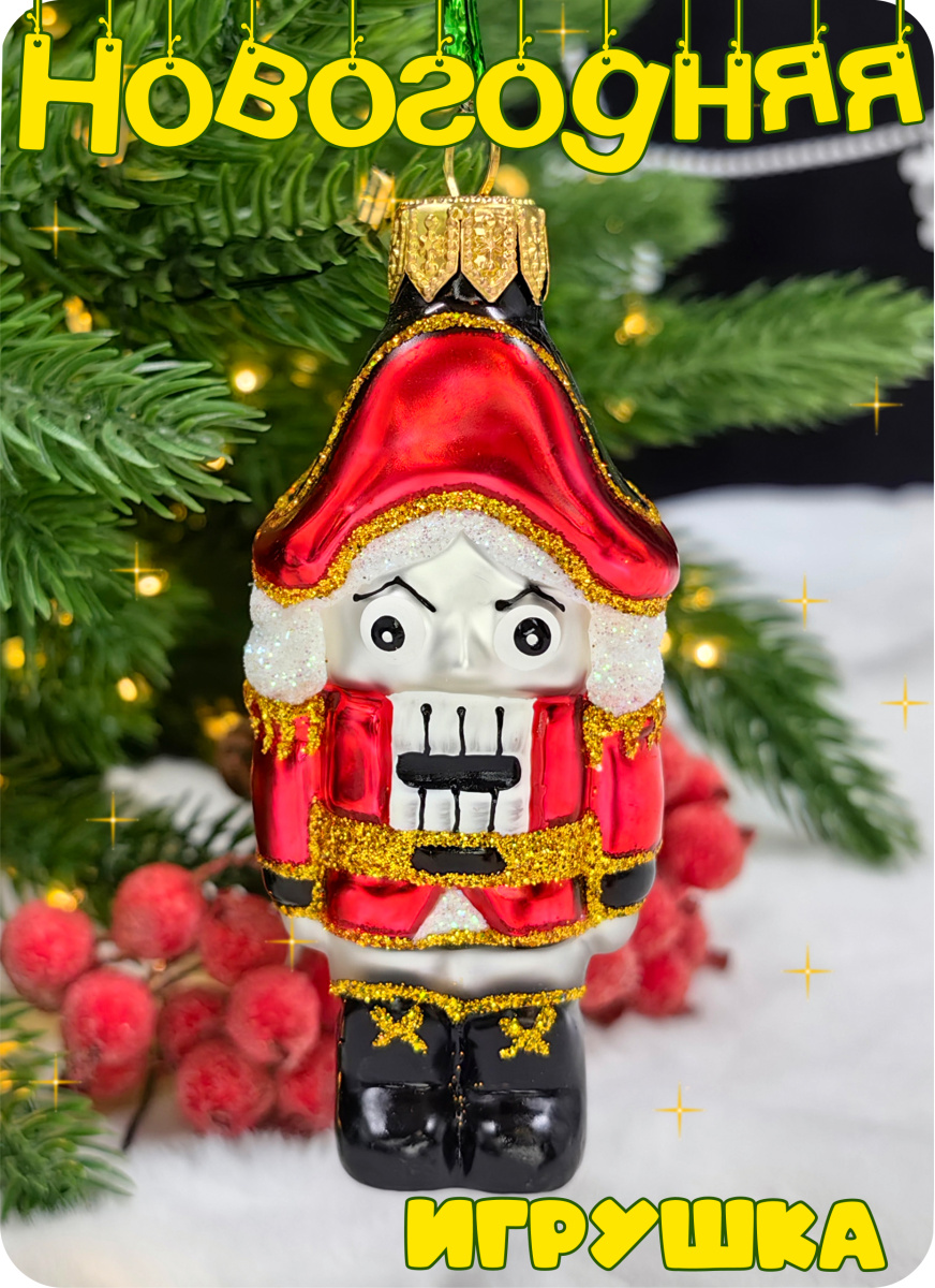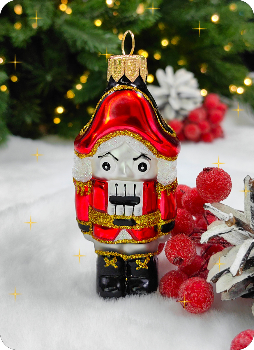 Елочная игрушка Щелкунчик красный 9 см, стекло  // щелкунчик мал.