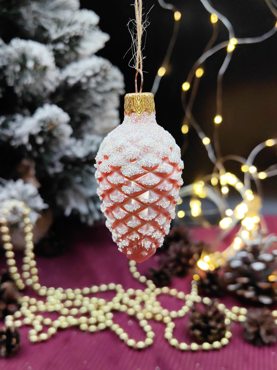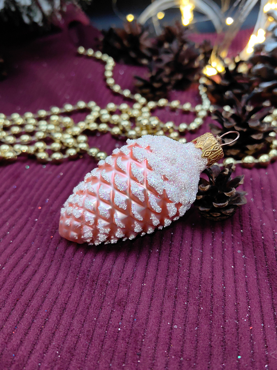 Елочная игрушка Шишка розовый 7 см, стекло  // шишка PINK