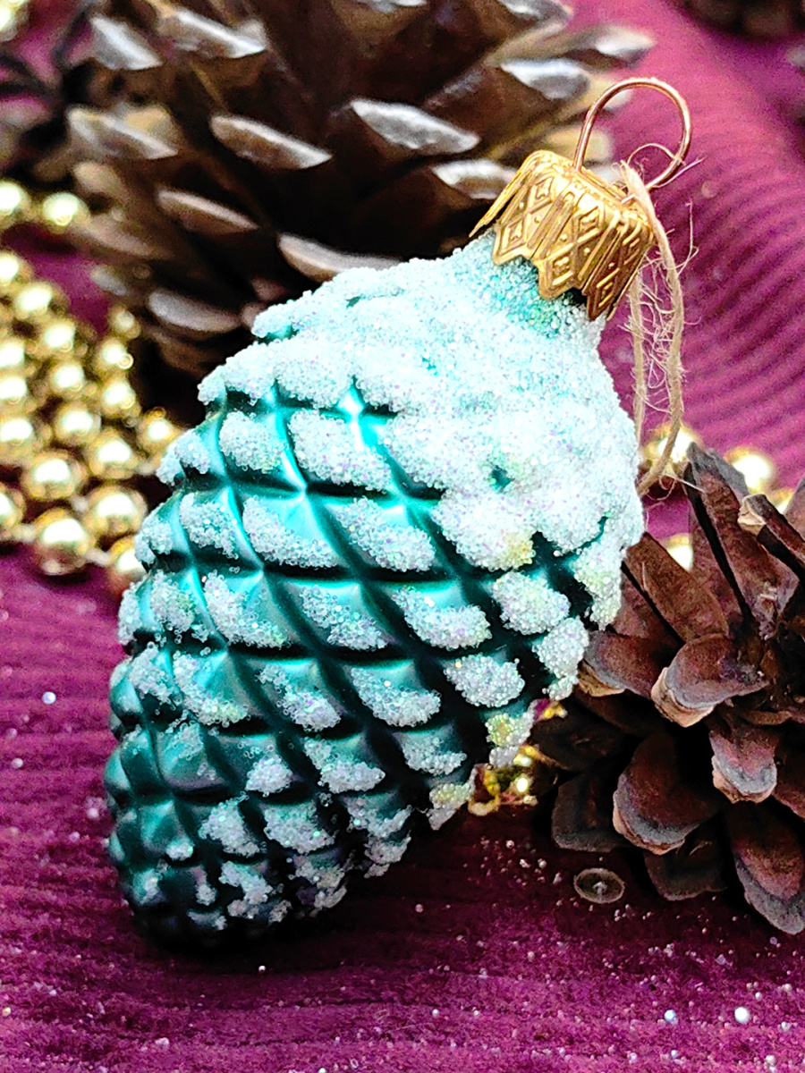 Елочная игрушка Шишка зеленый 7 см, стекло  // шишка GR