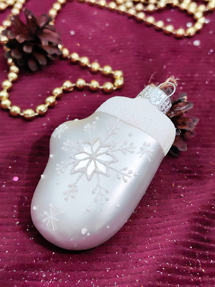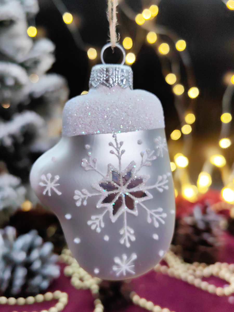 Елочная игрушка Варежка белый 8 см, стекло  // варежка WHITE