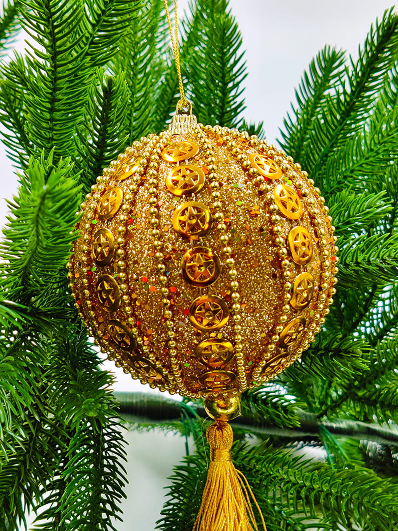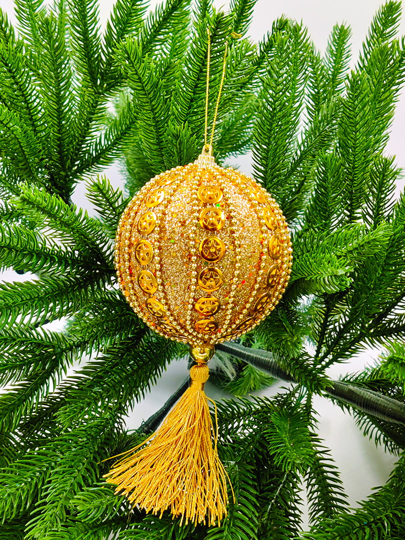 Шар с кистью 10 см 1 шт золотой 9920313