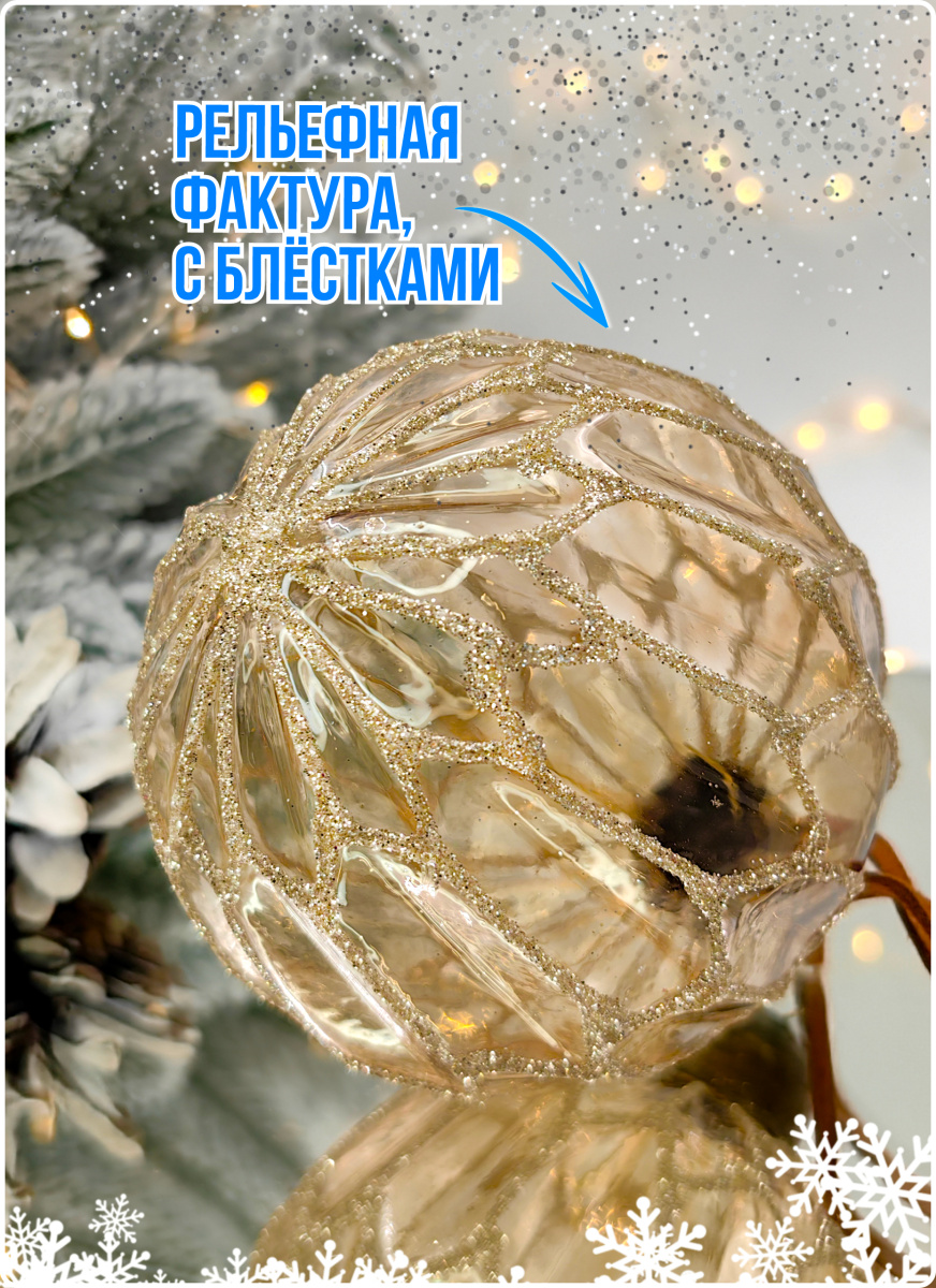 Шар прозрачно-персиковый 8 см, стекло Merry Green MG24009