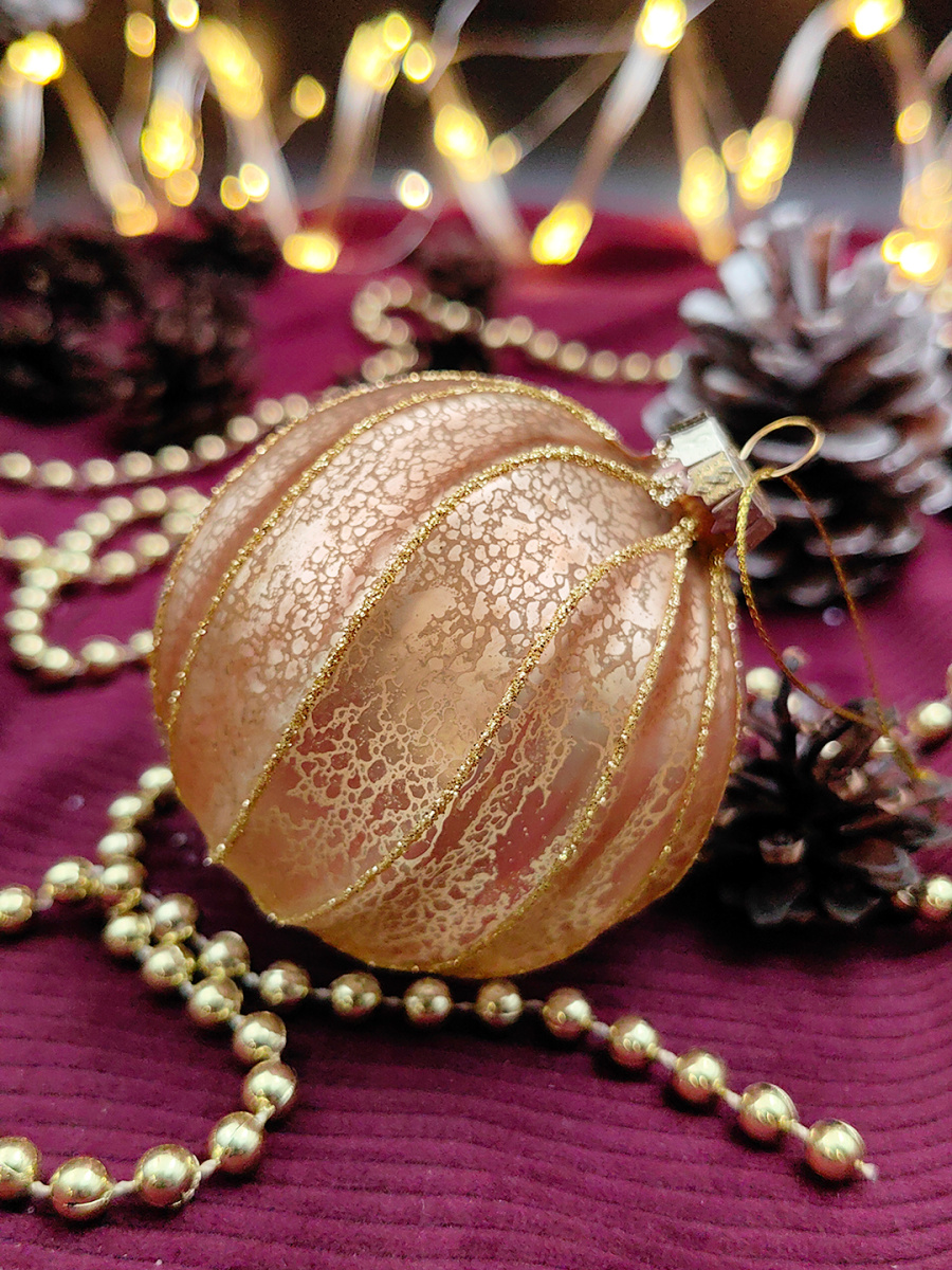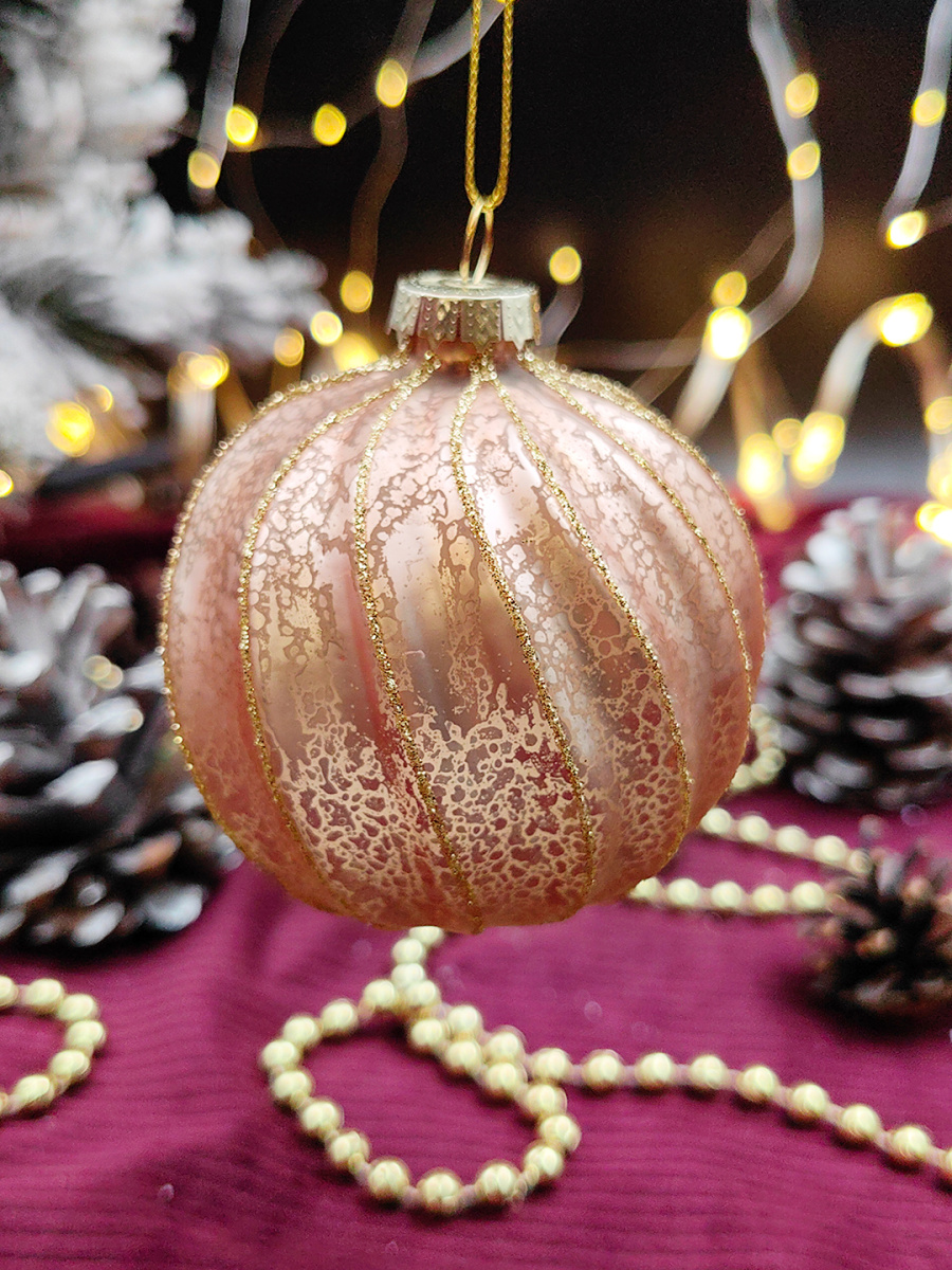 Шар розово-бронзовый 8 см, стекло Merry Green MG24251