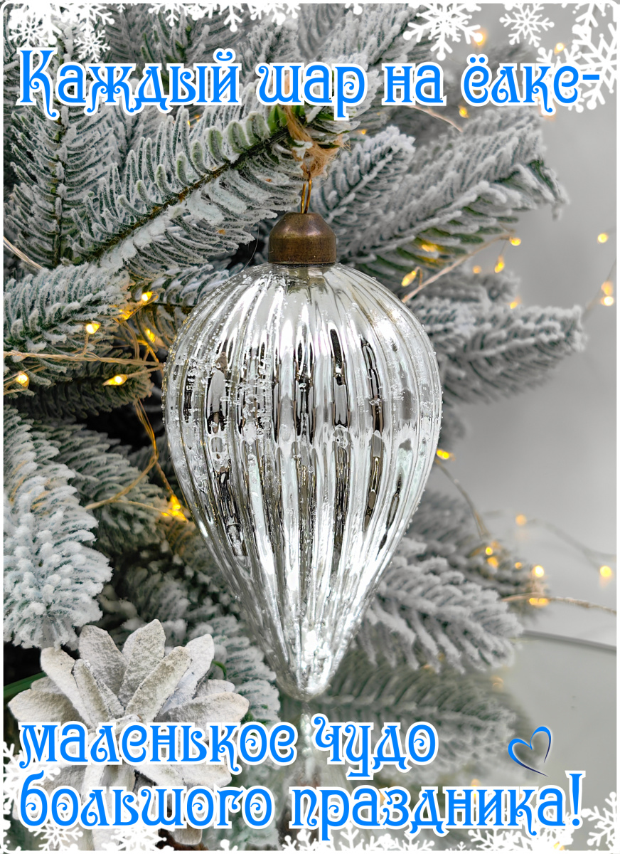 Шар серебристый 7х11 см, стекло Merry Green MG24245