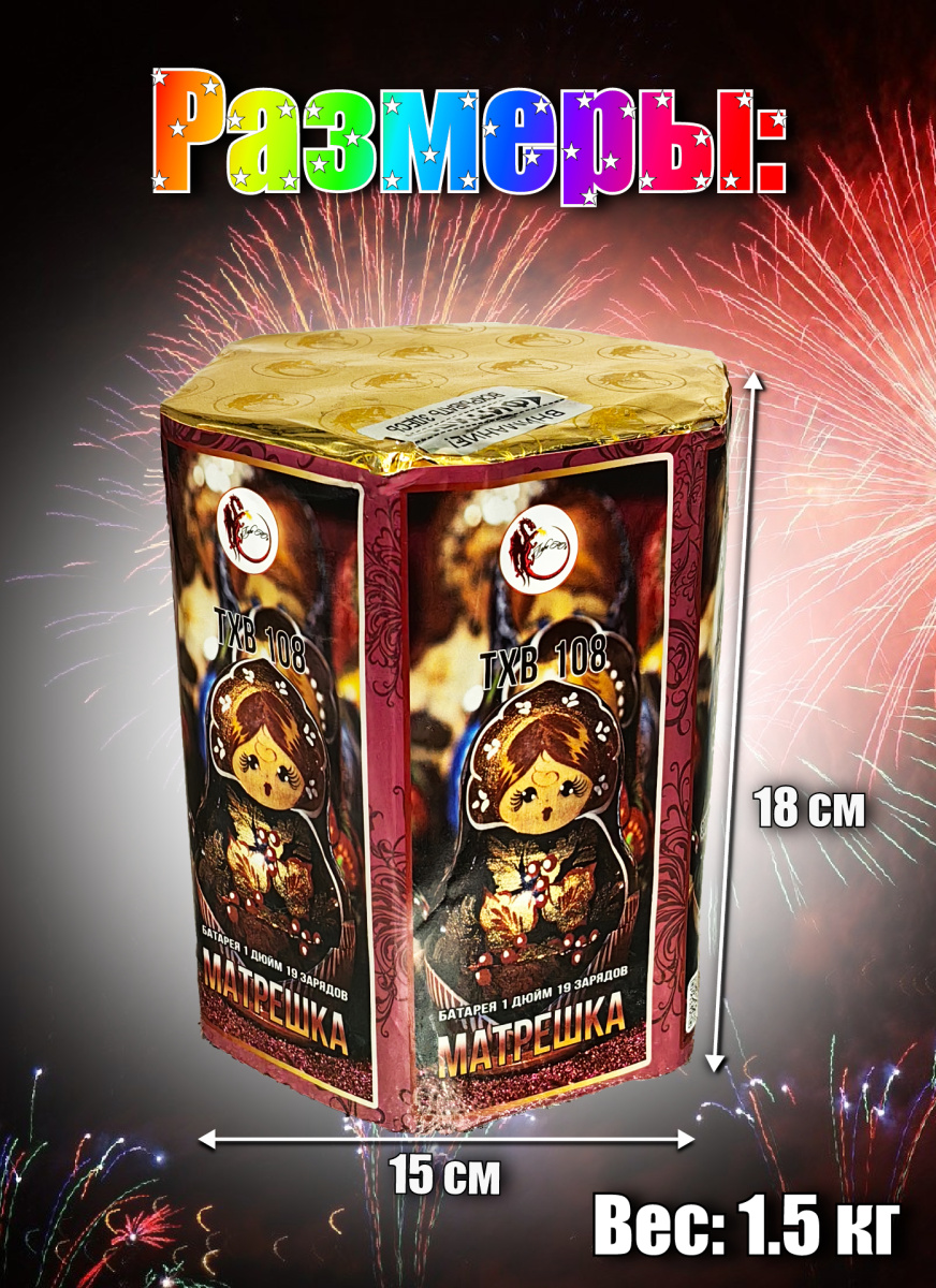 Батарея салютов Матрешка TXB108 19 выс. 1" 25 сек.