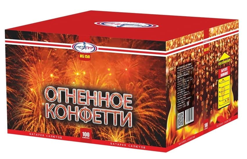 Батарея салютов Огненное конфетти МБ150 100 выс. 1.2" 66 сек.