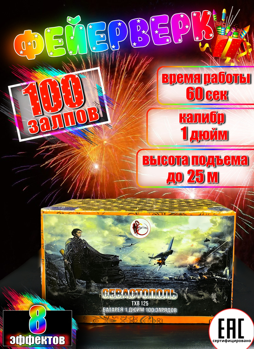 Батарея салютов Севастополь TXB125 100 выс. 1" 60 сек.
