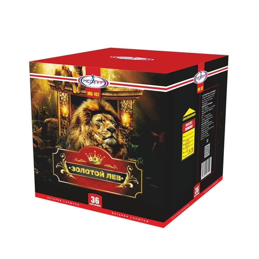 Батарея салютов Золотой лев МБ107 36 выс. 1.2" 43 сек.